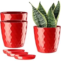 Belle Vous 2 Pack Red Ceramic Plant Pot 10cm 3 94 Inches Small Flower Planter Modern Folded Design Succulent Containers With Drainage Holes Indoor Outdoor Use For Plants Cactus And